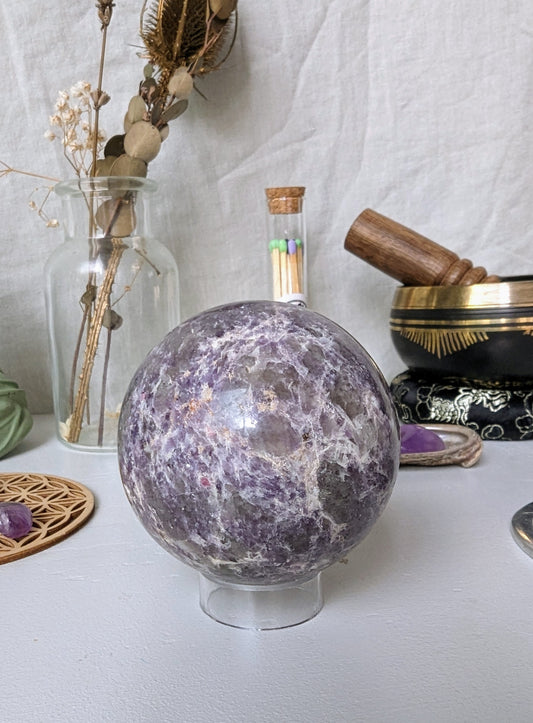 Sphère en tourmaline rose sur lépidolite