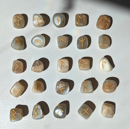 Sac de runes nordiques en pierre de lune