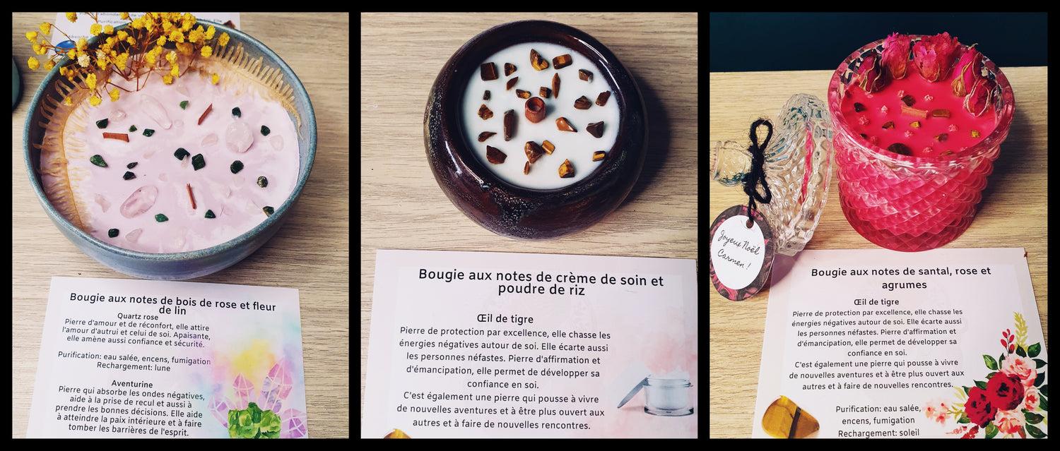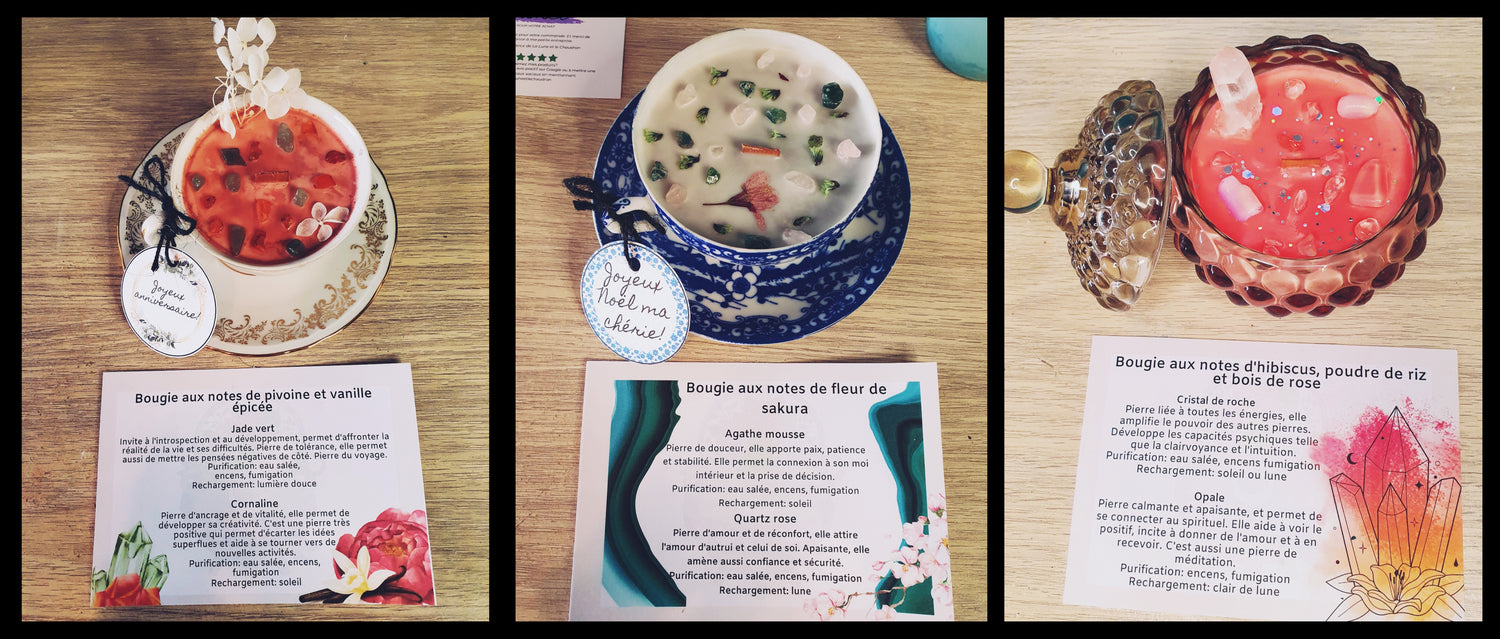 Si vous ne savez pas quelles pierres choisir, vous pouvez simplement décrire ce que vous cherchez à apporter à la personne à qui vous offrez la bougie, ou bien à vous même, et je me charge de trouver les pierres convenant le mieux à vos besoins.