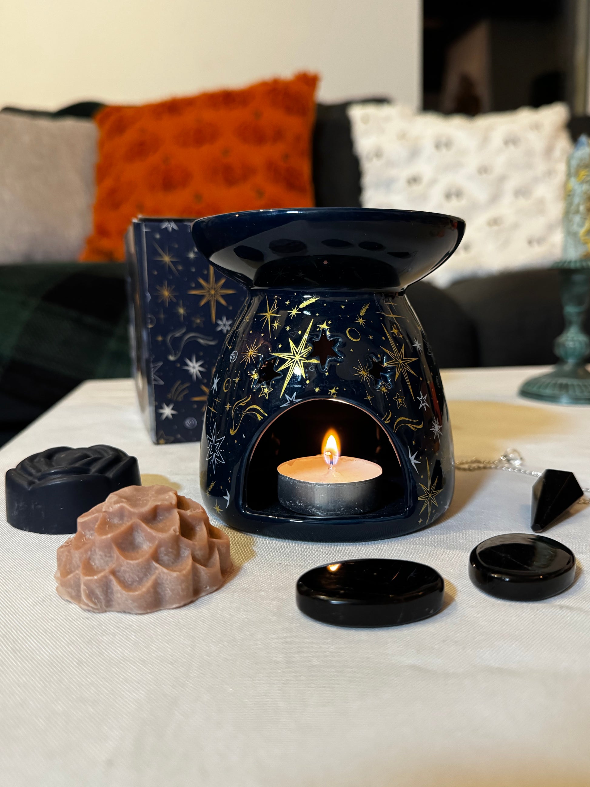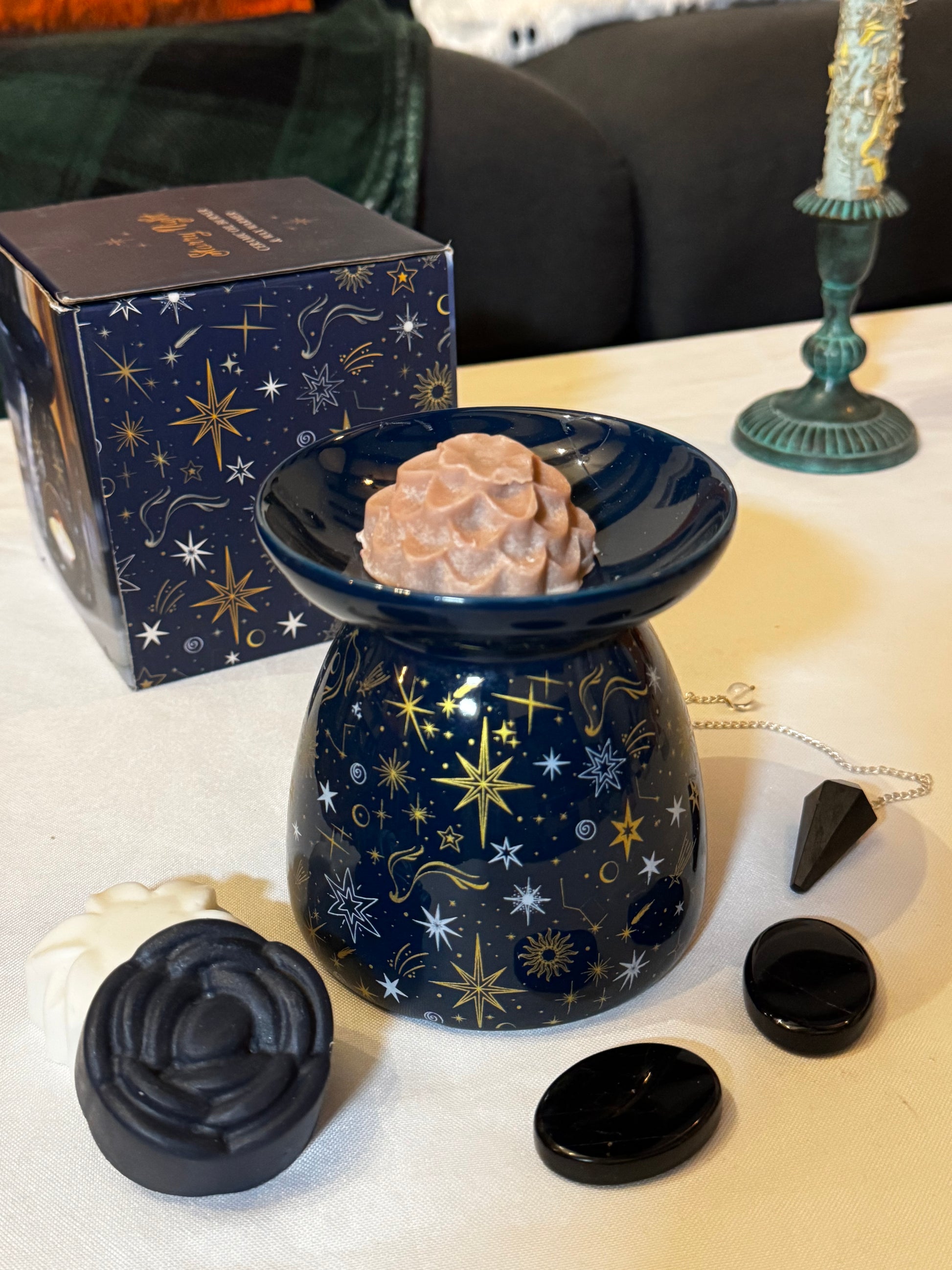 Laissez vous séduire par ce magnifique brûle-parfum aux couleurs d'une nuit étoilée.