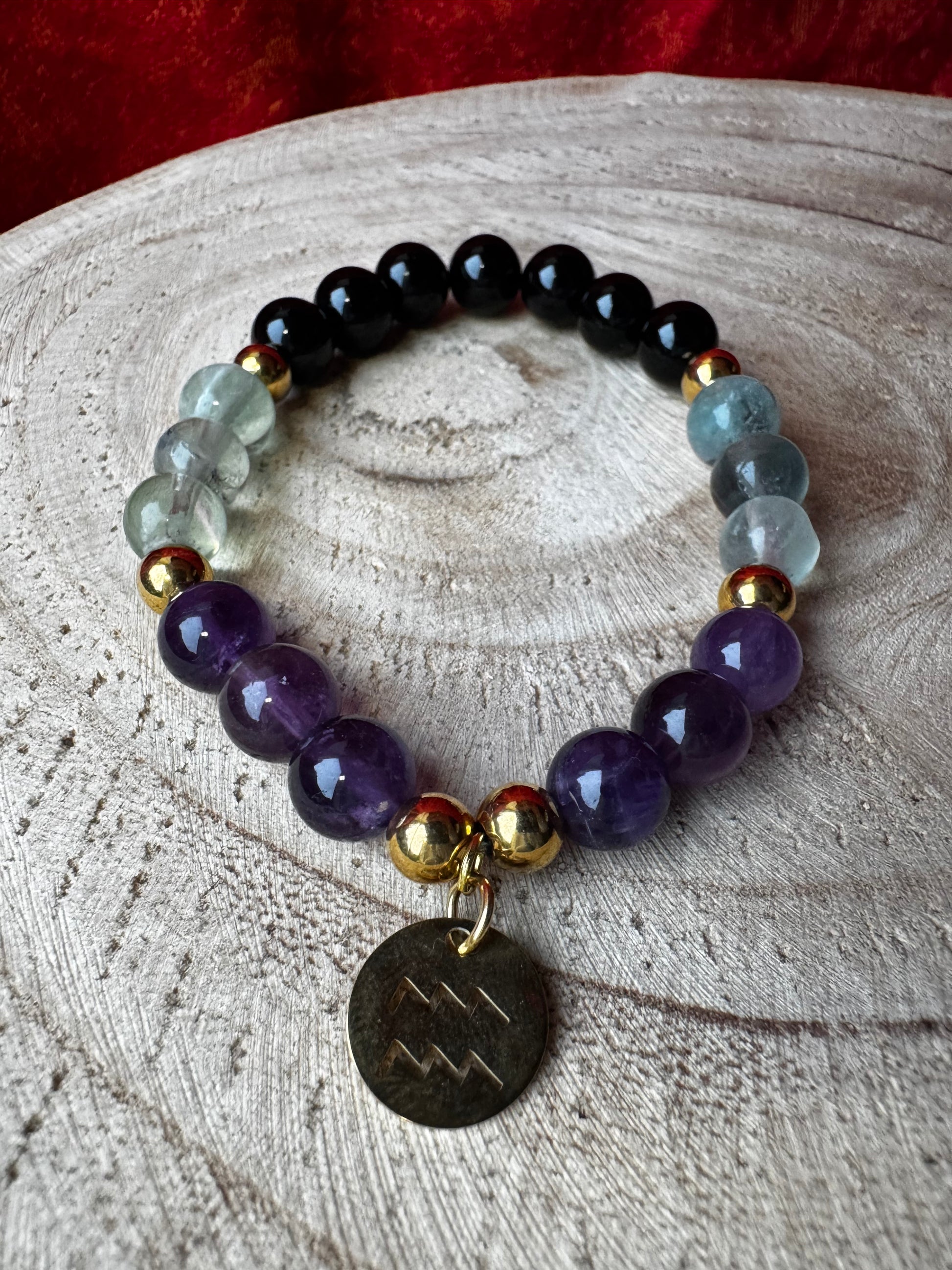 La fluorite verte favorise la clarté mentale et l’harmonie émotionnelle. Elle aide à structurer les pensées, à faire le tri entre intuition et surmenage intellectuel, et à avancer avec plus de fluidité. Associée à l’améthyste et à l’onyx, elle soutient l’esprit libre du Verseau tout en l’aidant à rester centré.