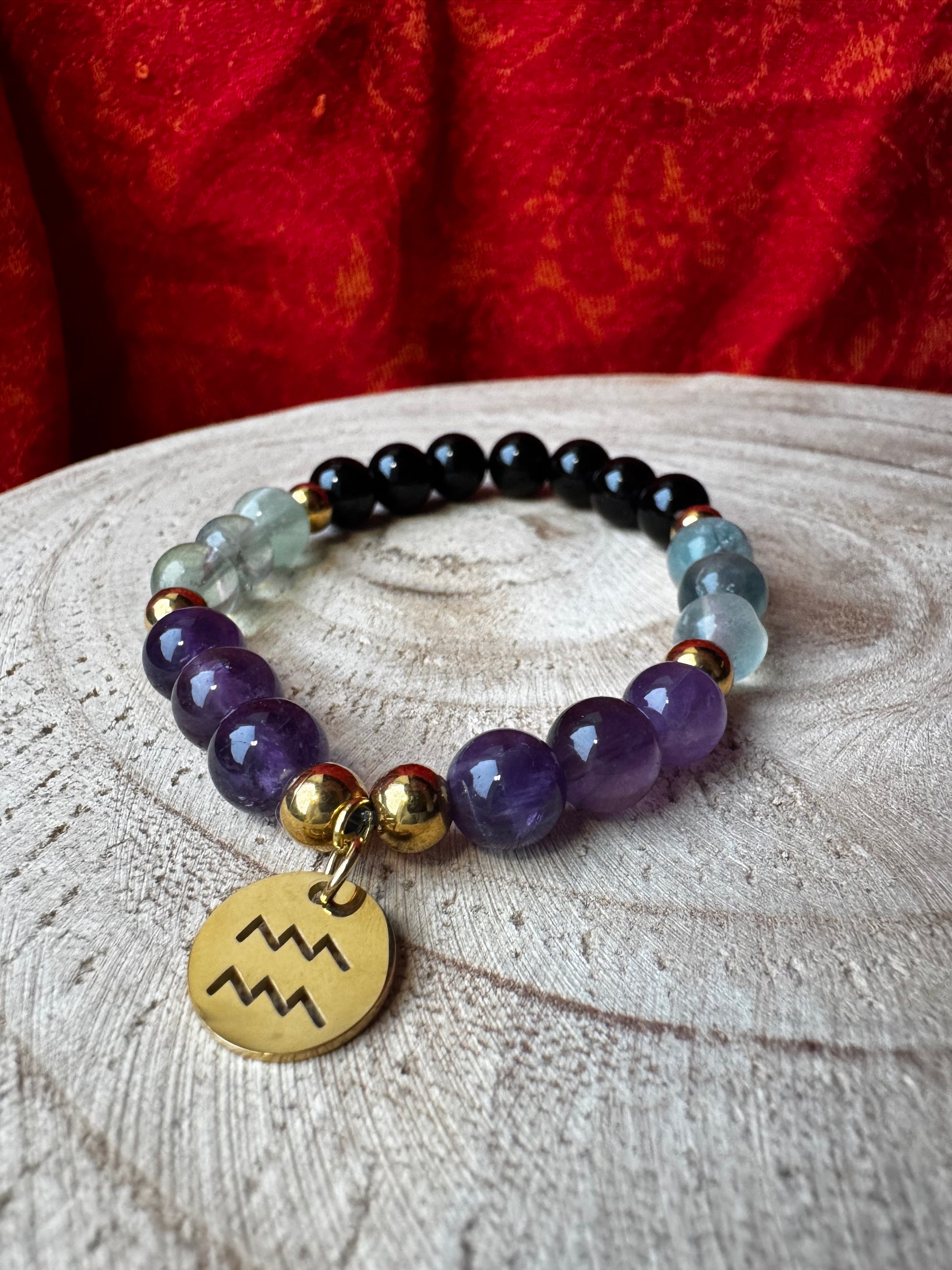 Les pierres naturelles intégrées à La provocation du Verseau ont été sélectionnées pour soutenir la clarté mentale, la liberté d’esprit et l’équilibre émotionnel de ce signe d’air.